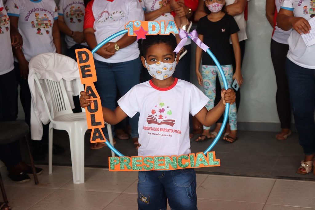 As aulas presenciais nas escolas da rede municipal de ensino de Dom Macedo Costa começaram nesta segunda-feira (4). Segundo a Secretaria de Educação, são mais de 140 alunos que vão retornar às atividades em sala de aula, depois de quase dois anos nas modalidades virtual e híbrida. O retorno das aulas presenciais foi recebido com muita expectativa e alegria por pais e alunos da rede municipal de ensino.